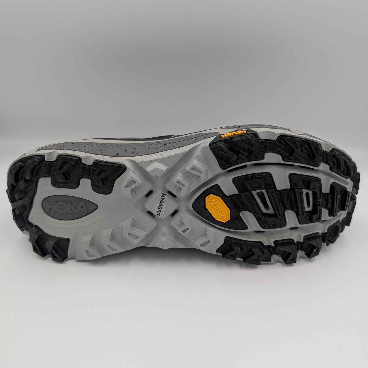 HOKA特有の柔らかく履き心地の良いソールとメタロッカー構造により、歩行やランニング時の足を前に出す動作を後押ししてくれます。また、アウトソールには路面のコンディションを問わずグリップ力を発揮するVibram®メガグリップアウトソールが搭載されています。